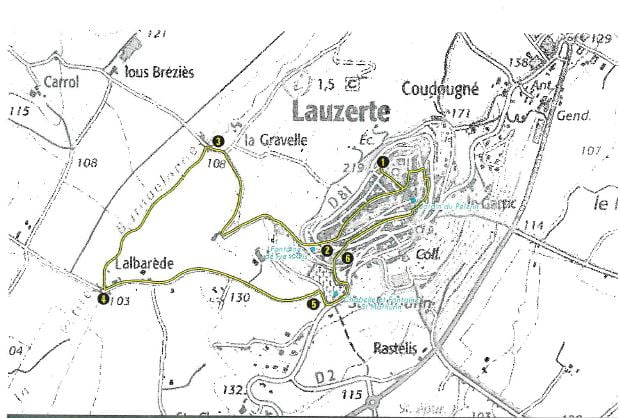 1 - De la Promenade de l'Eveillé, traverser la Place des Cornières, tout droit, puis tourner à droite, descendre la Grand Rue jusqu'à l'ancien hôpital et prendre l'escalier sur la gauche, traverser la rue de la Brèche, prendre à droite...